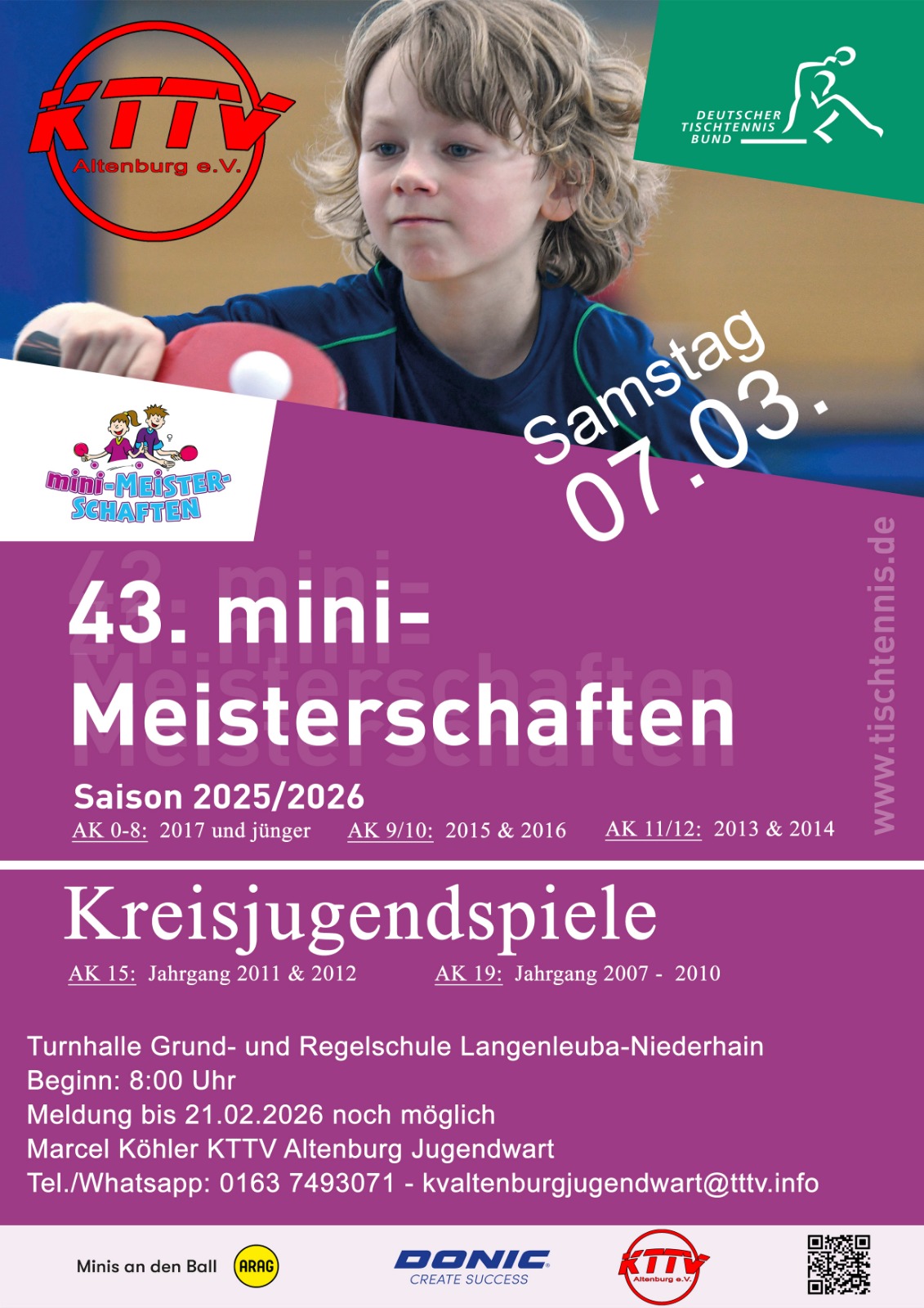 Vorankündigung der Abteilung Tischtennis Anfang März wird wieder eine Tischtennis- Meisterschaft für nichtaktive Spieler aller Vereine im Kreis Altenburg[…]