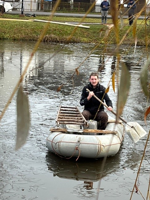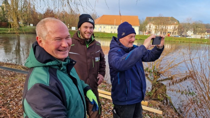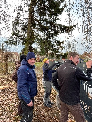Viele kleine Vorbereitungen folgten aber noch. Lars Heimer kümmerte sich um das Material und Kay Müller stellte uns die Farbe für den Anstrich zur Verfügung. Auch mussten noch Fundamente auf der Insel errichtet werden. Unser Ziel war der 1. Advent- und die Zeit wurde knapp. Dann war es endlich so weit, am 29. November kam der große Moment: Mit Hilfe eines Schlauchbootes und zahlreicher helfender Hände wurde der Schwibbogen auf die Insel gebracht. Ganze sechs Stunden dauerte der Aufbau – doch die Mühe hatte sich gelohnt. Am Ende erstrahlte der eindrucksvolle Schwibbogen auf der Niederhainer Insel mit Motiven vom Halben Schloss und der Nicolaikirche und sorgt nun für einen ganz besonderen adventlichen Anblick.