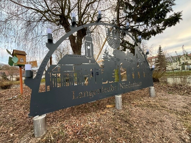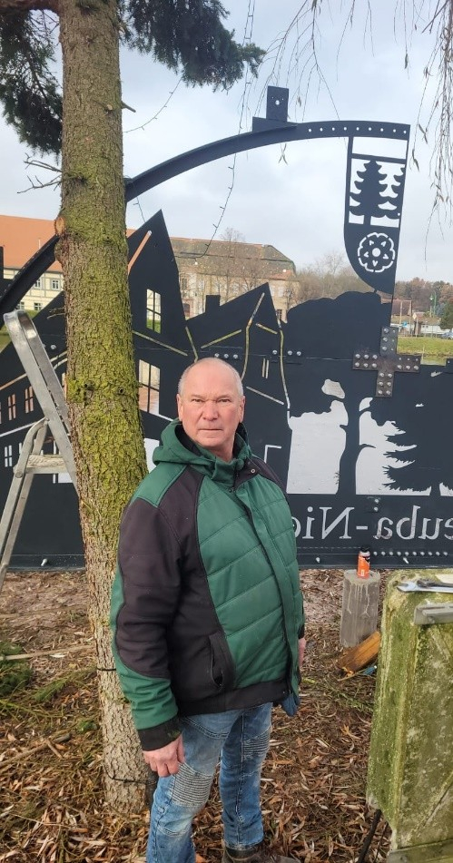Der Niederhainer Karnevalsclub schmückte über viele Jahre hinweg den Tannenbaum auf der Insel. Doch der Baum war inzwischen sichtbar in die Jahre gekommen – besonders auf der linken Seite fehlten immer mehr Äste. So machte man sich bereits im vergangenen Jahr Gedanken über eine passende Alternative. Die Idee eines großen Schwibbogens gefiel allen gut, doch war schnell klar: So ein Stück ist nicht nur schwer zu bekommen, sondern auch kostspielig.